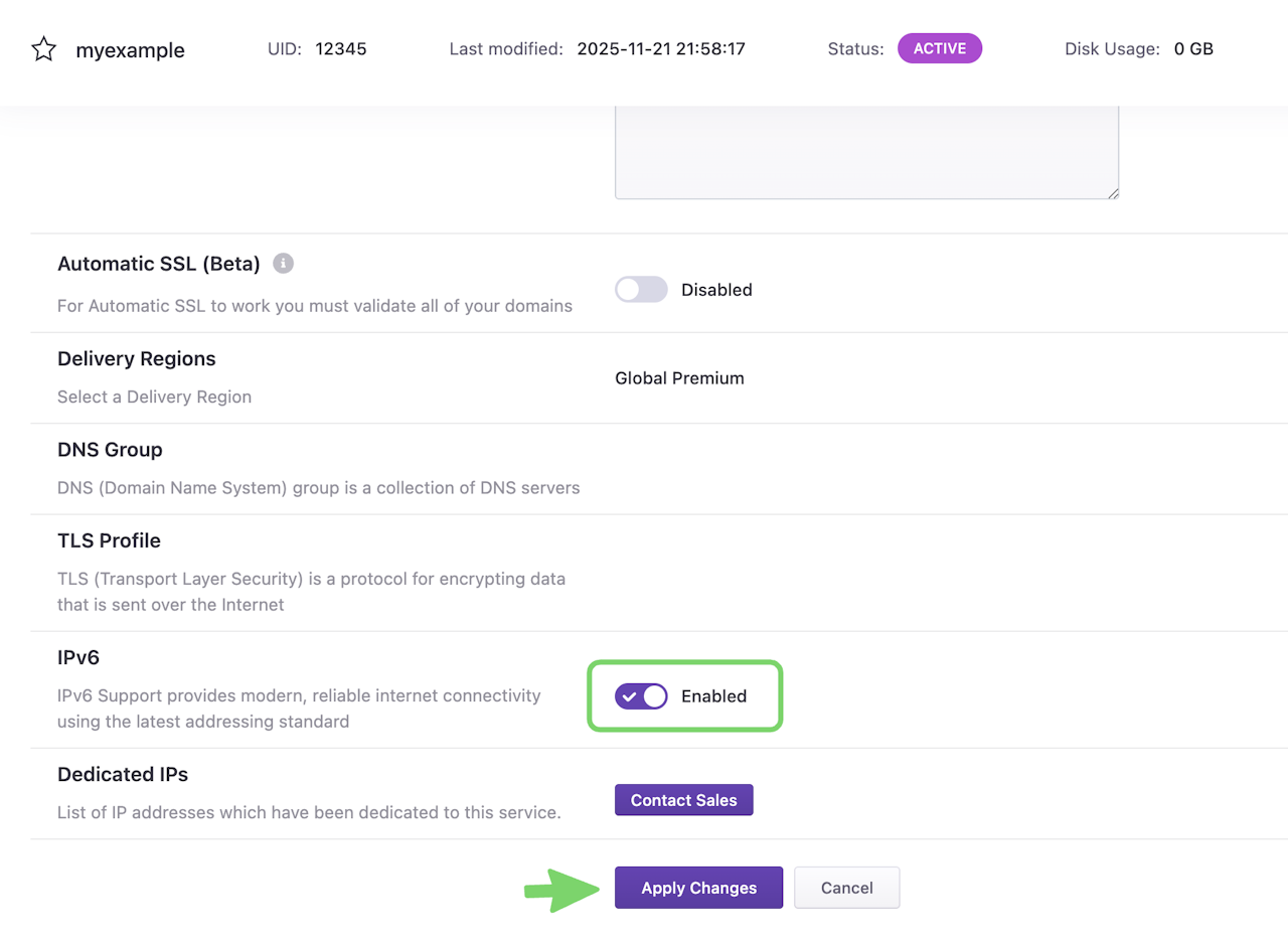 By default, CacheFly uses the IPv4 protocol for end-user delivery. However, IPv6 is available to use on a service-by-service basis.