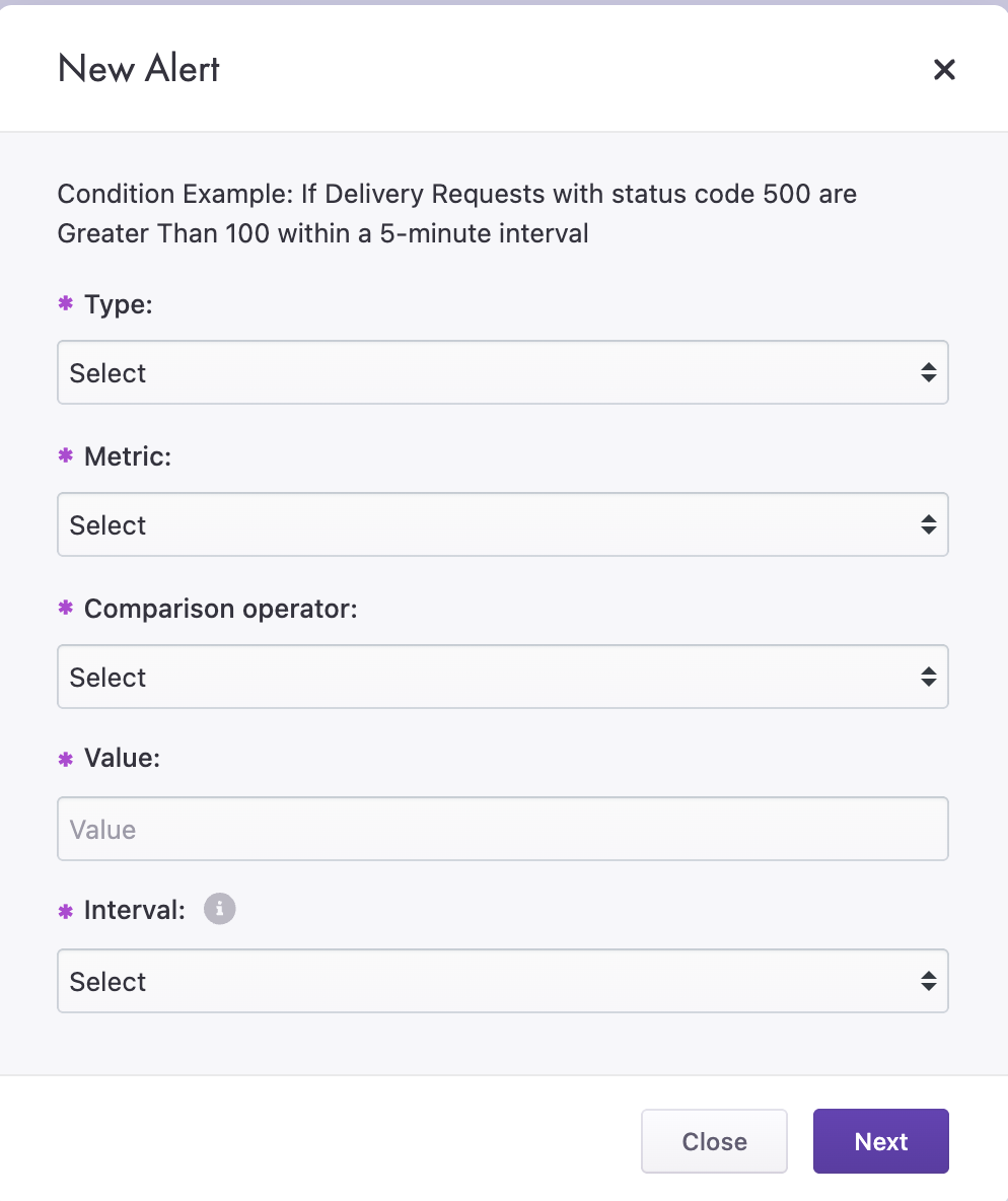 When configuring an alert, you will be presented with the following conditions: