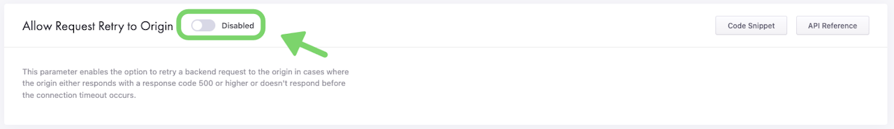 By enabling Allow Request Retry to Origin for the service, you can ensure that in these cases there is a retry of the backend request to the origin.