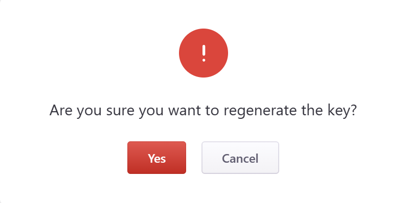 When you click on the red button Yes, the new (regenerated) combination of ASCII characters for the key will be displayed in the Current API Key field.