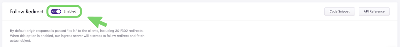 When the Follow Redirect option is enabled, the CacheFly server that is serving clients over the net (the ingress server) will attempt to follow the redirect and fetch the object for the client.
