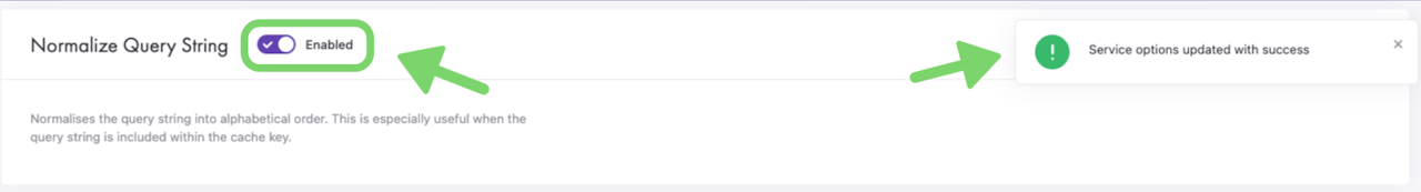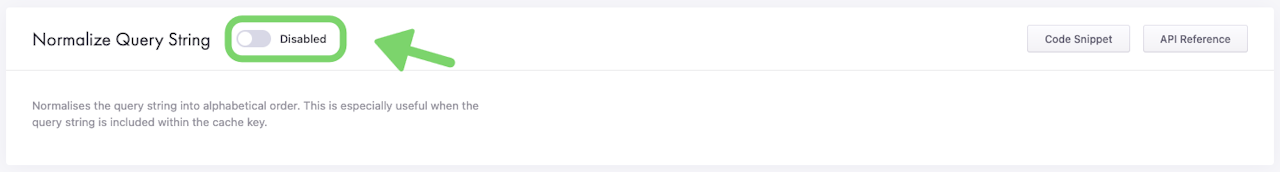 Enabling the Normalize Query String option normalizes the query string into alphabetical order. This is especially useful when the query string is included within the cache key.
