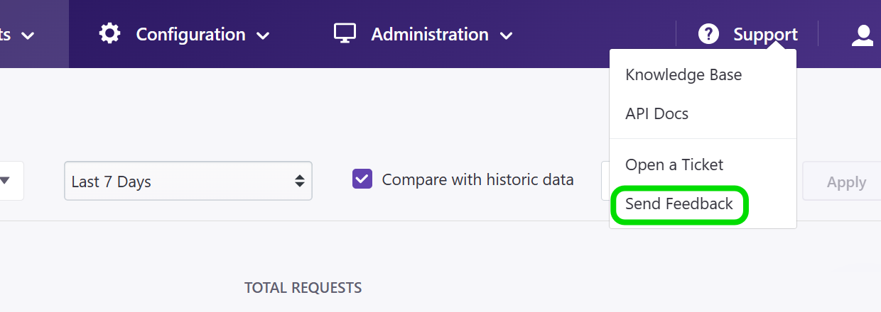 To give your feedback in the CacheFly feedback popup window (Support > Send Feedback):
