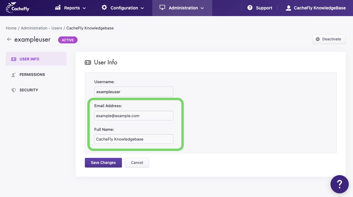 In the USER INFO screen for a user (Administration > Users > USERNAME > USER INFO):