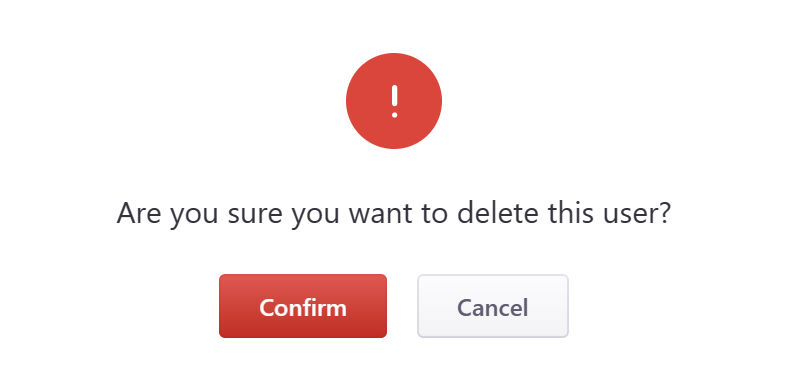 A popup window appears. Click on Confirm to delete the user.