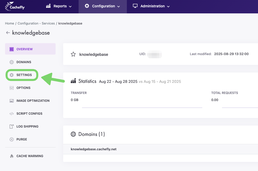 On the left of the screen, click on SETTINGS to view the settings for the service