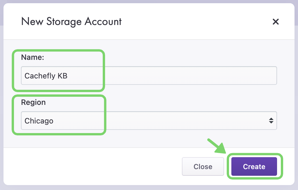 Follow the prompt to give the new CacheFly Object Storage account a name and select the region you would like to use