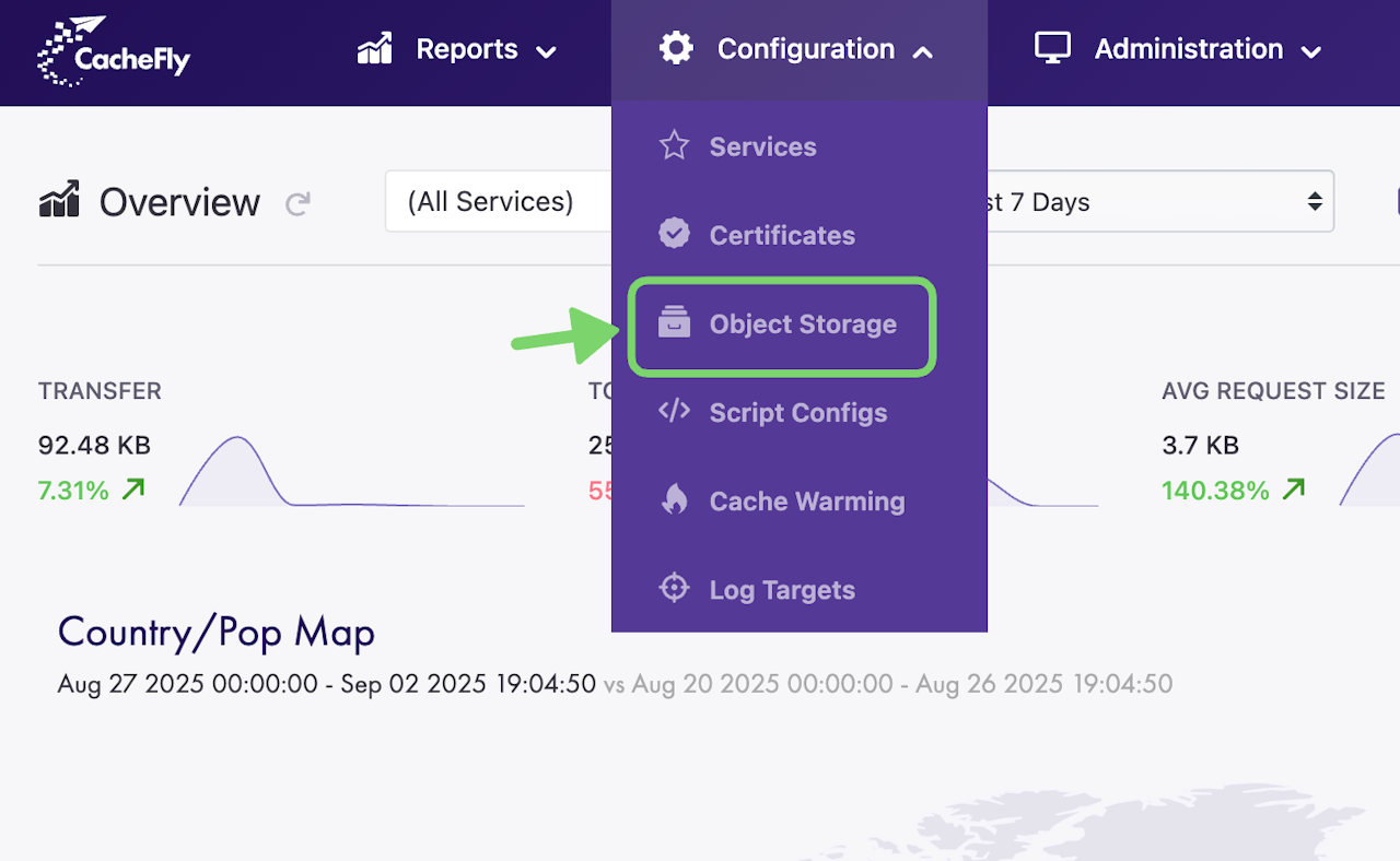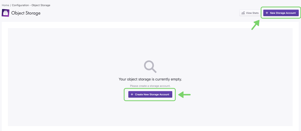 Navigate to Configuration > Object Storage