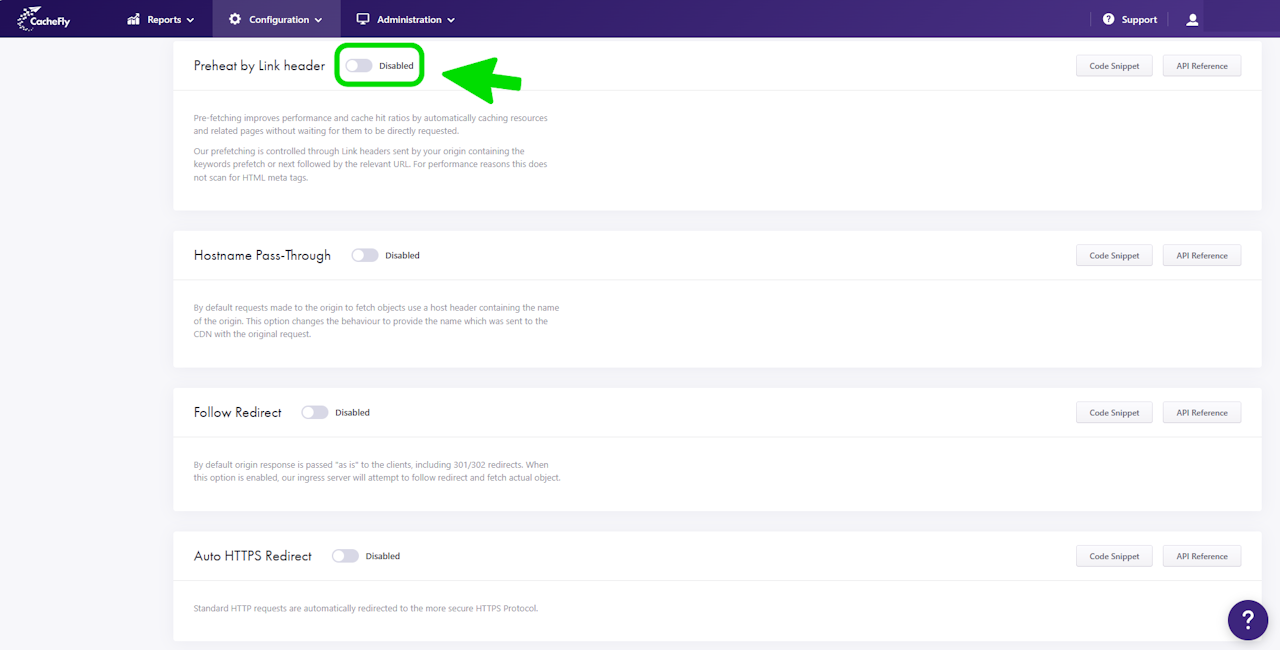 You can enable the Preheat by Link header option for individual CacheFly services to act on such HTTP link headers. See more on creating and managing a service.